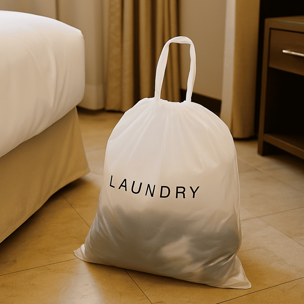 穿膠片袋是在袋口位置熱封一層加強膠條,可抽出形成提把或吊掛孔結構,廣泛應用於服飾、百貨、文具與零售商品的展示與包裝。常見材質為 LDPE 或 HDPE ,膠片區可依需求打不同樣式的孔洞,便於上架陳列。Taiwan Keen Pro 擅長膠片貼合與切袋技術,配備定位設備,確保大量製作過程中尺寸穩定與外觀整齊。亦可依品牌需求提供多色印刷與特殊開孔設計,是零售陳列包裝的高質感解決方案供應商。